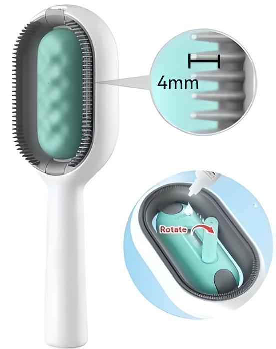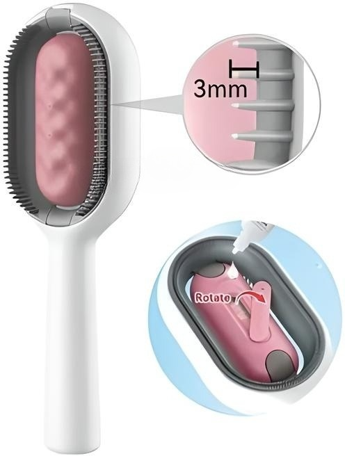 Inbyggd vattenbehållare: Borsten är utrustad med en vattenbehållare som är lätt att fylla och kan aktiveras under borstningen för att ge en fuktig borstning. Denna funktion gör det enkelt att hålla pälsen ren och minska flygande lösa hårstrån.